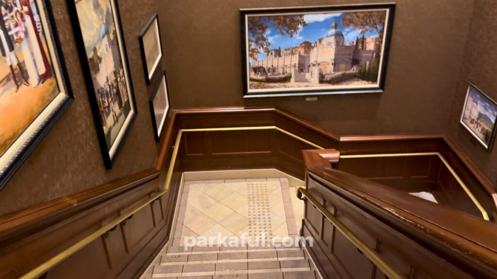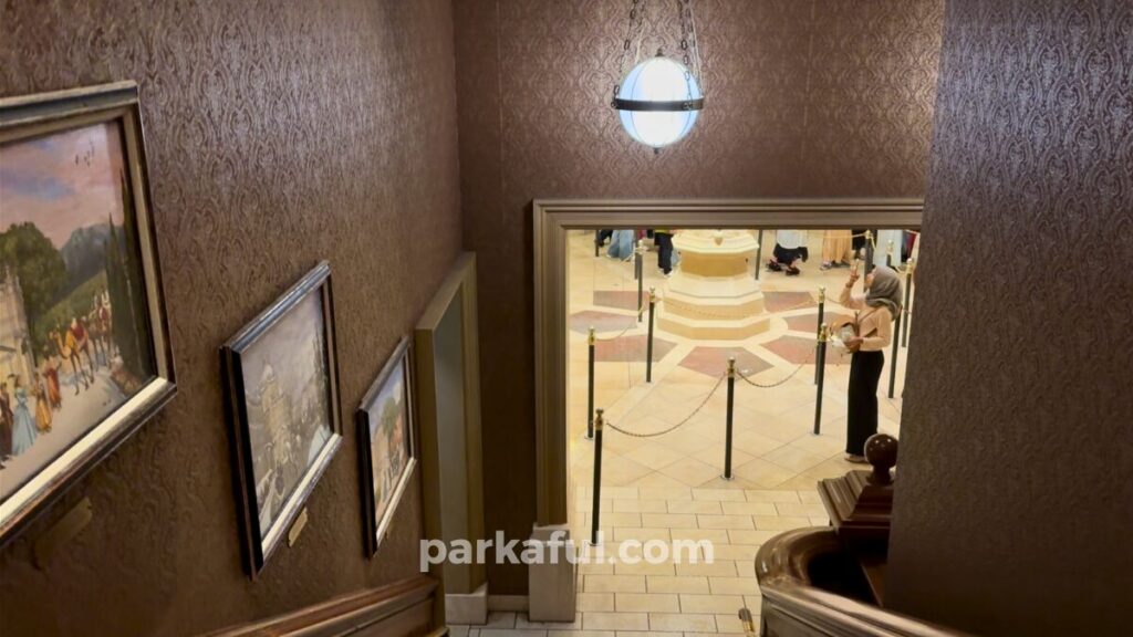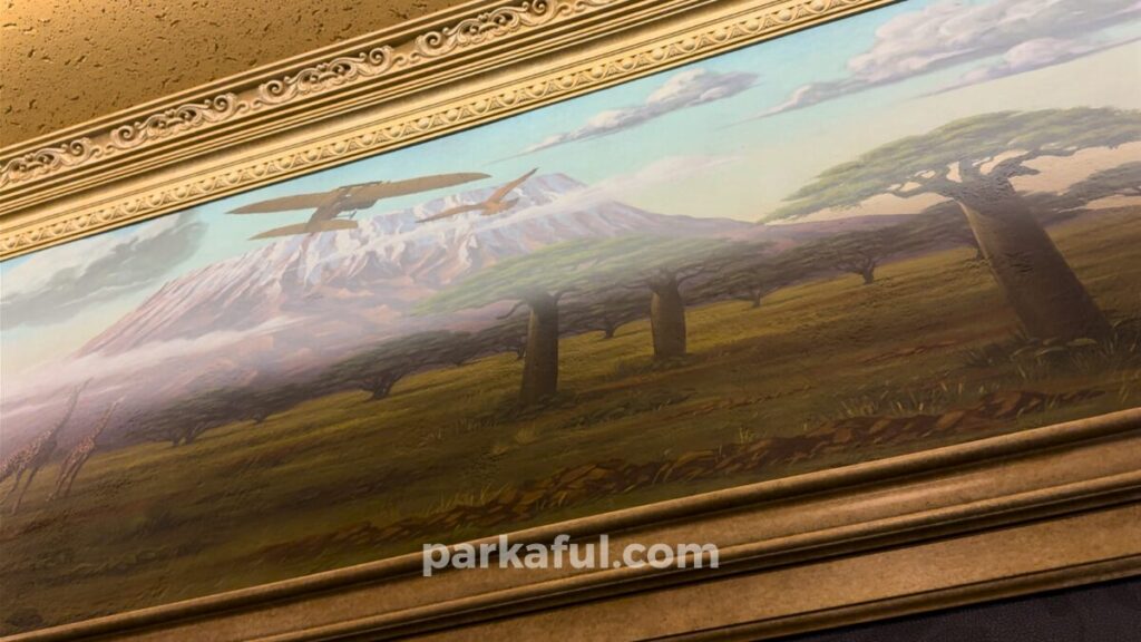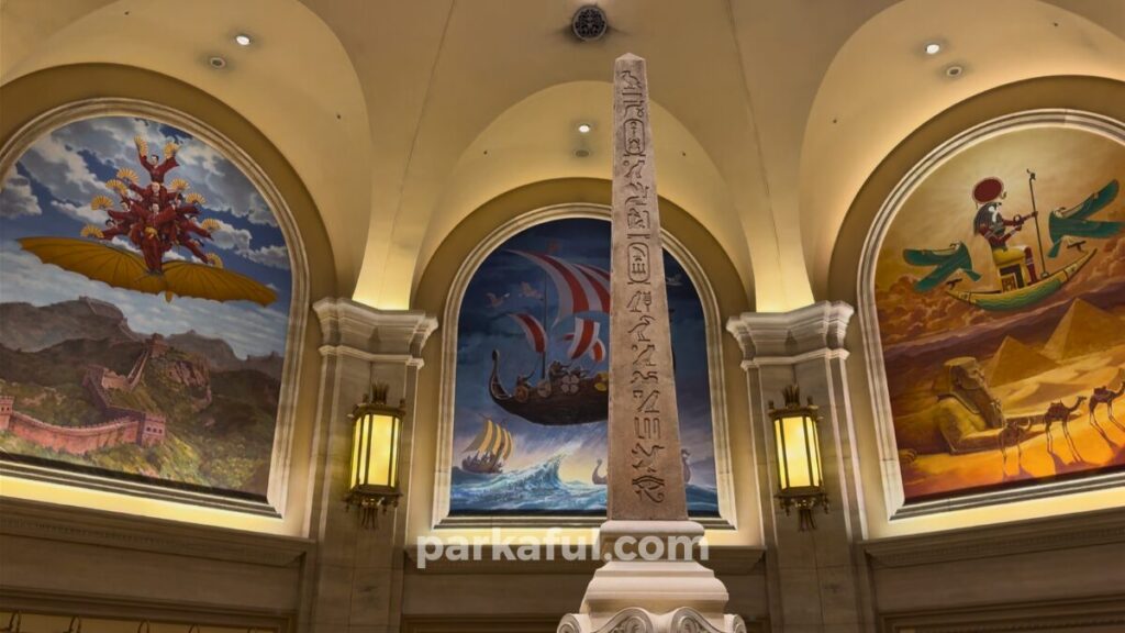 現在、博物館ではカメリアの生誕100周年を記念した特別展が開催されており、ゲストはその特別展を訪れた観光客という設定になっています。待ち列の壁画や展示物もすべてこのストーリーに沿って作り込まれているので、博物館を「見学する」感覚でじっくり楽しみましょう。待ち時間さえ体験の一部になっているのが、ソアリンの奥深さです。