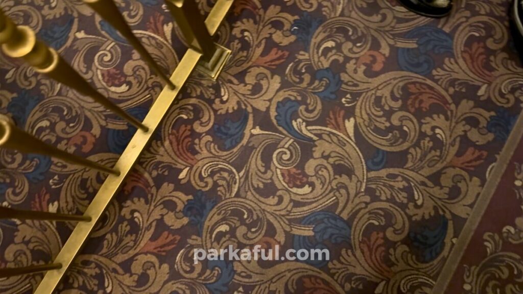 待合室のカーペットは華やかな模様